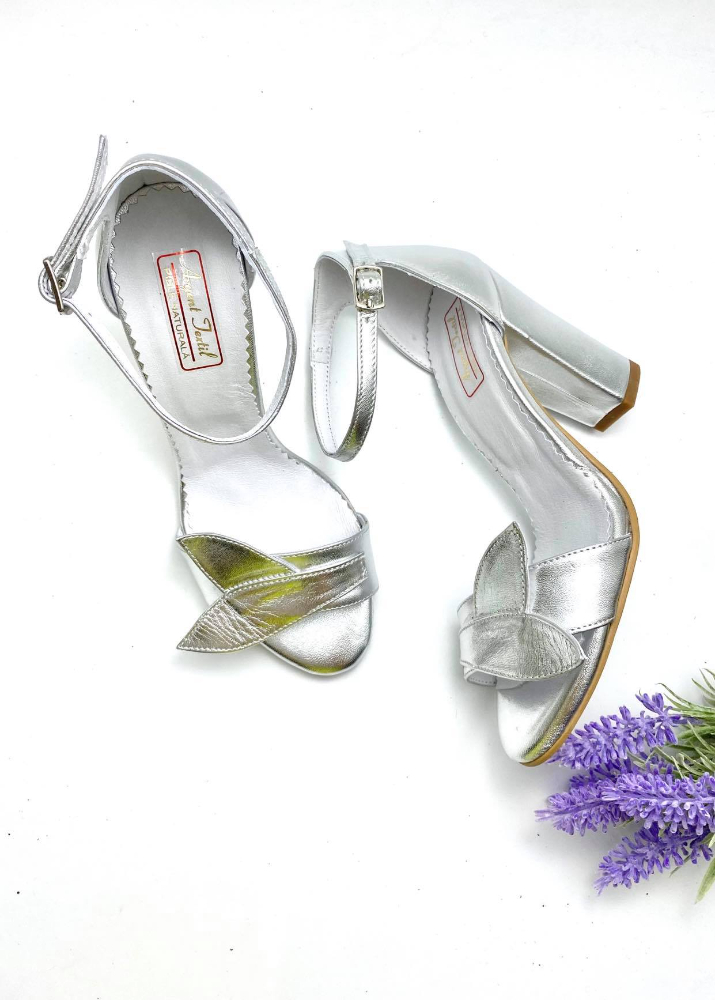 Sandale  cu toc de 9cm gros imbracat si cu talpa construita si finisata manual .