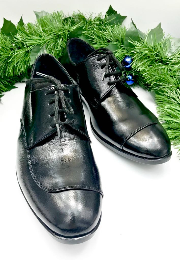 Pantofi barbatesti din piele naturala, cu varf rotund si talpa neagra.