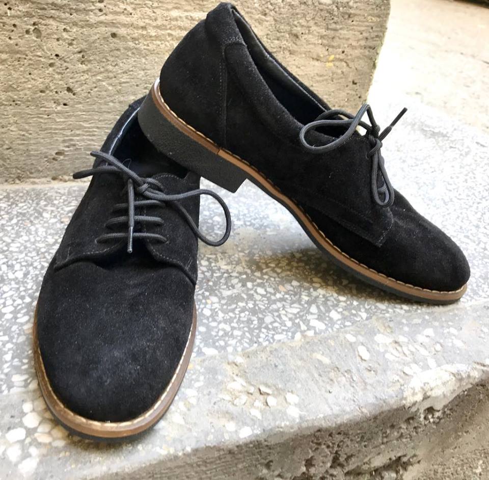 Pantofi barbatesti din piele naturala, cu varf rotund si talpa neagra cu rama.