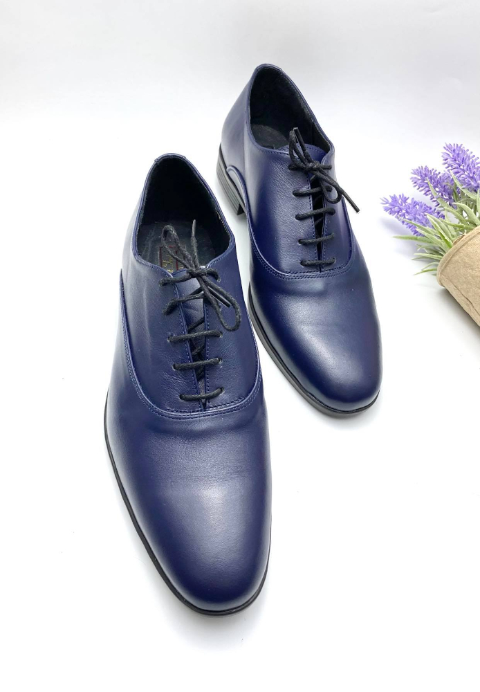 Pantofi barbatesti din piele naturala, cu varf rotund si talpa neagra.