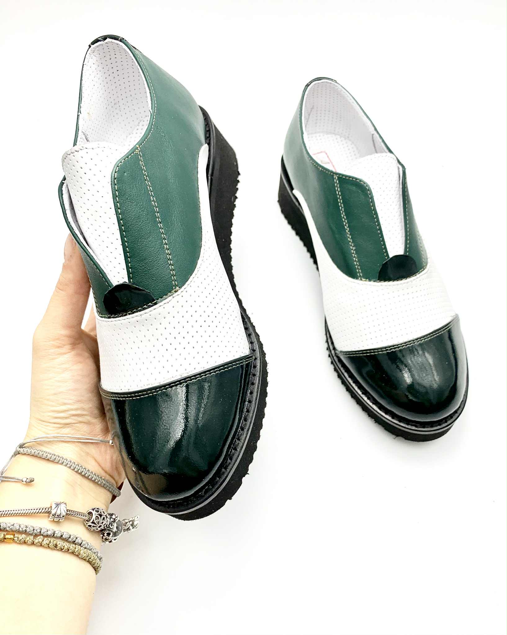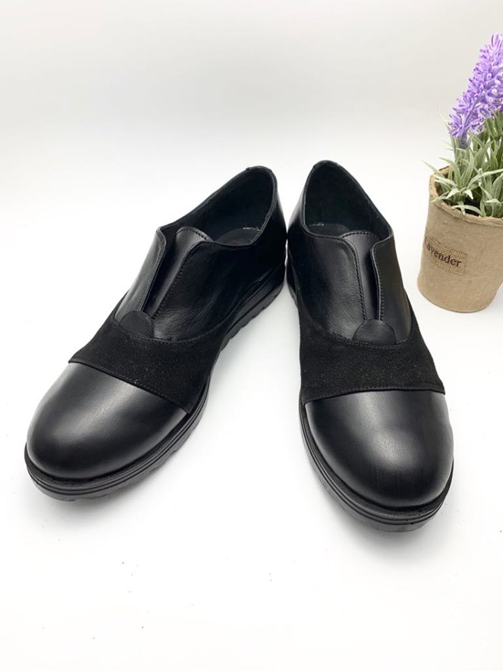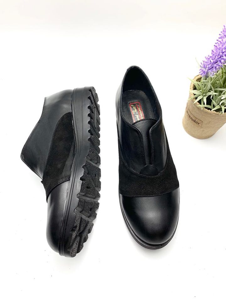Pantofi din piele narurala cu talpa usoara, usor ortopedica (2 cm la varf si 4 cm la spate).