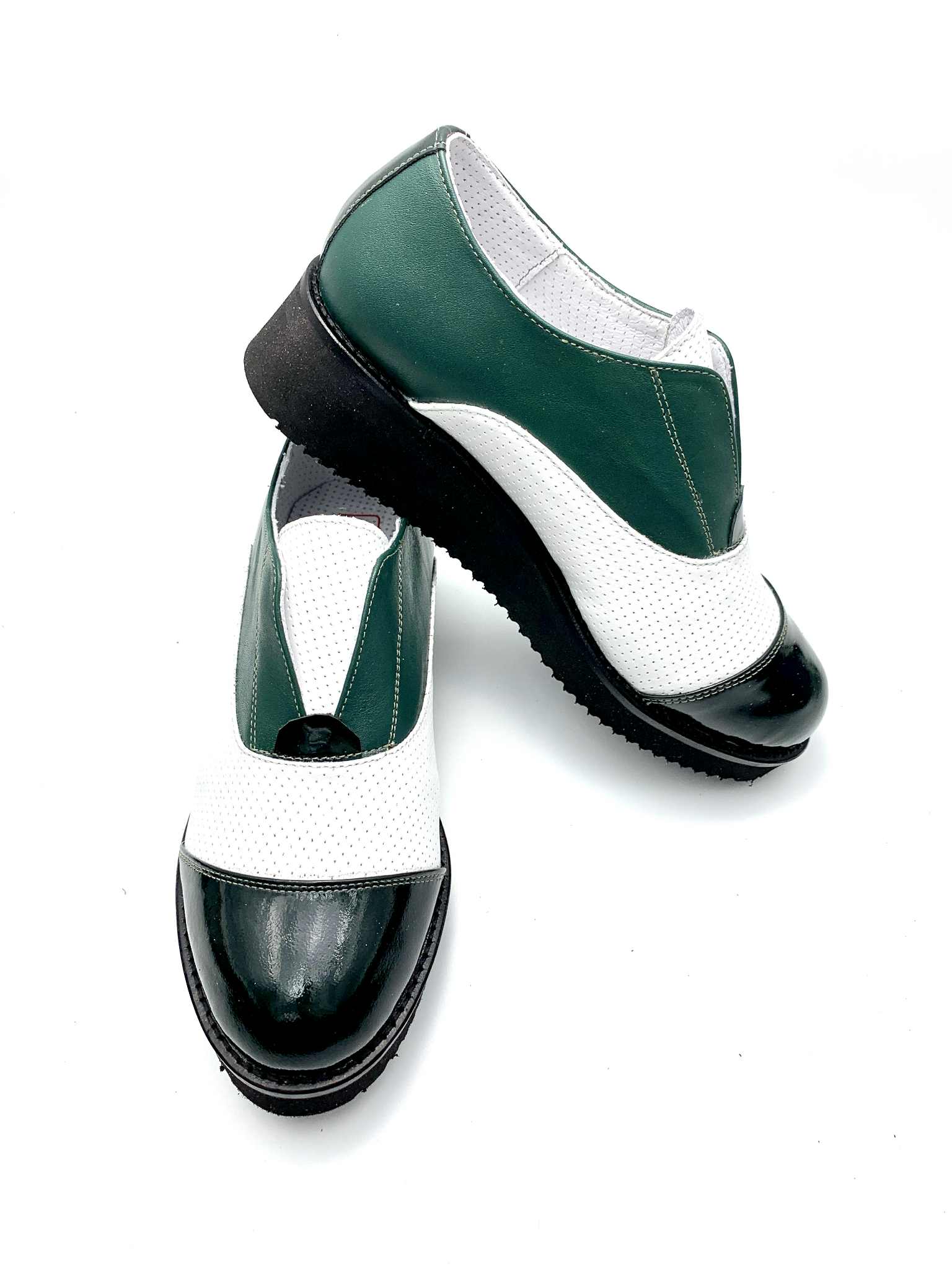 Pantofii ii putem confectiona din orice culoare sau combinatie de culori si din orice tip de piele (box, piele intoarsa, piele lacuita).