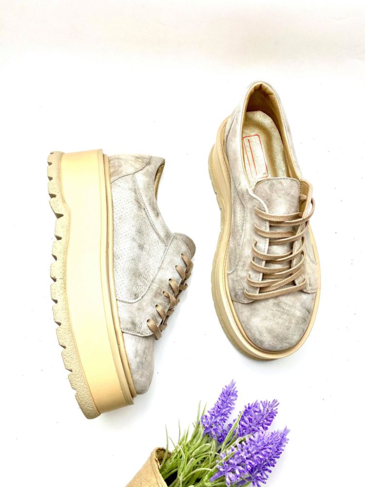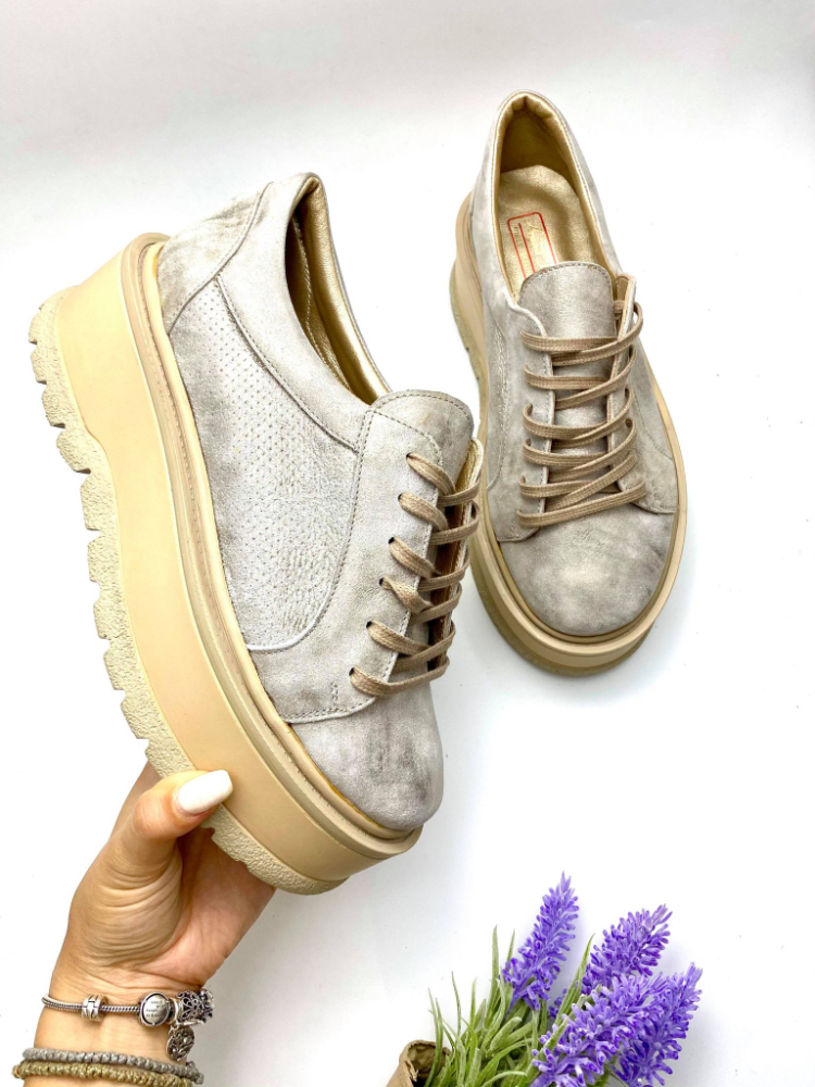Pantofi din piele narurala cu talpa dreapta.