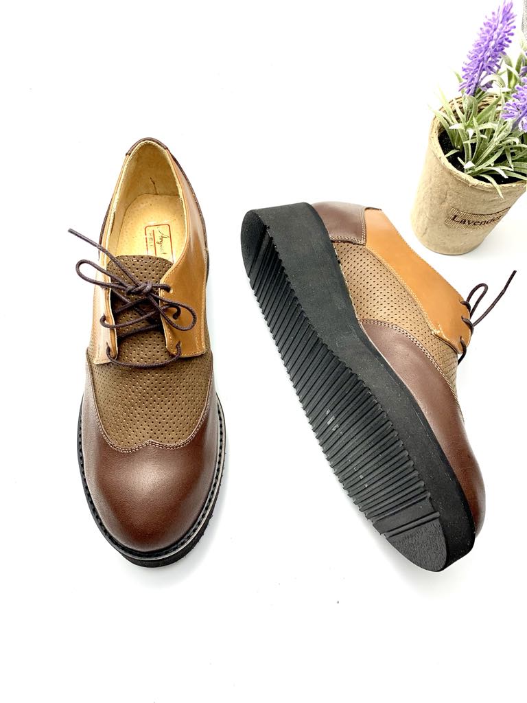 Pantofi din piele narurala cu talpa usoara, usor ortopedica (2 cm la varf si 4 cm la spate).