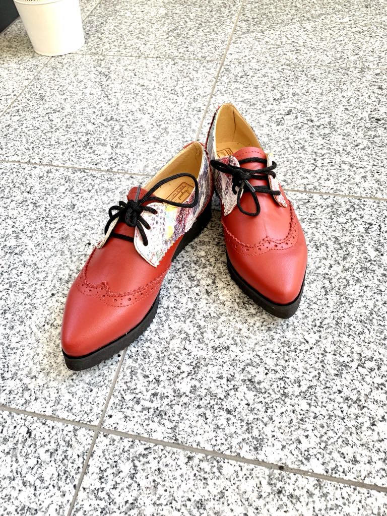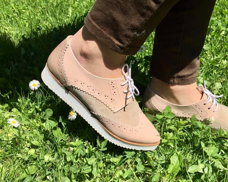 Pantofi din piele narurala cu talpa usoara, usor ortopedica (2 cm la varf si 3 cm la spate).