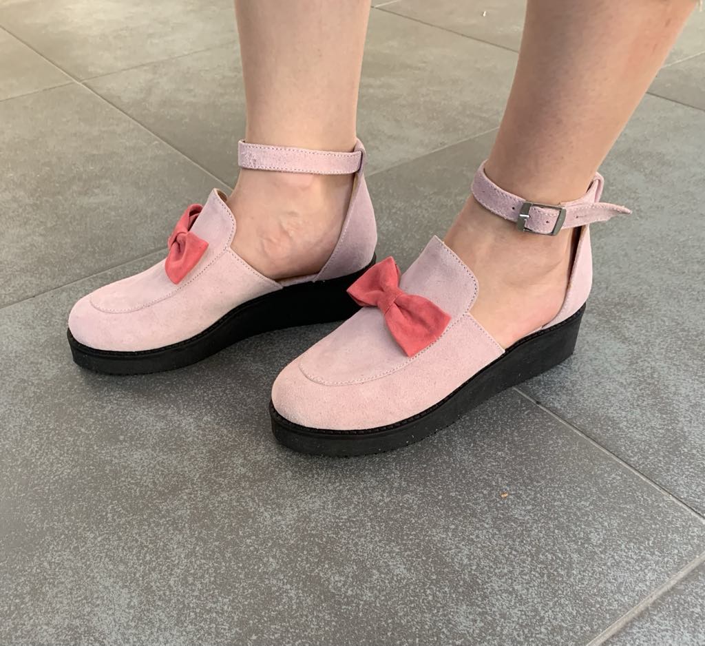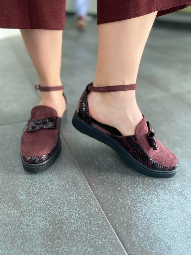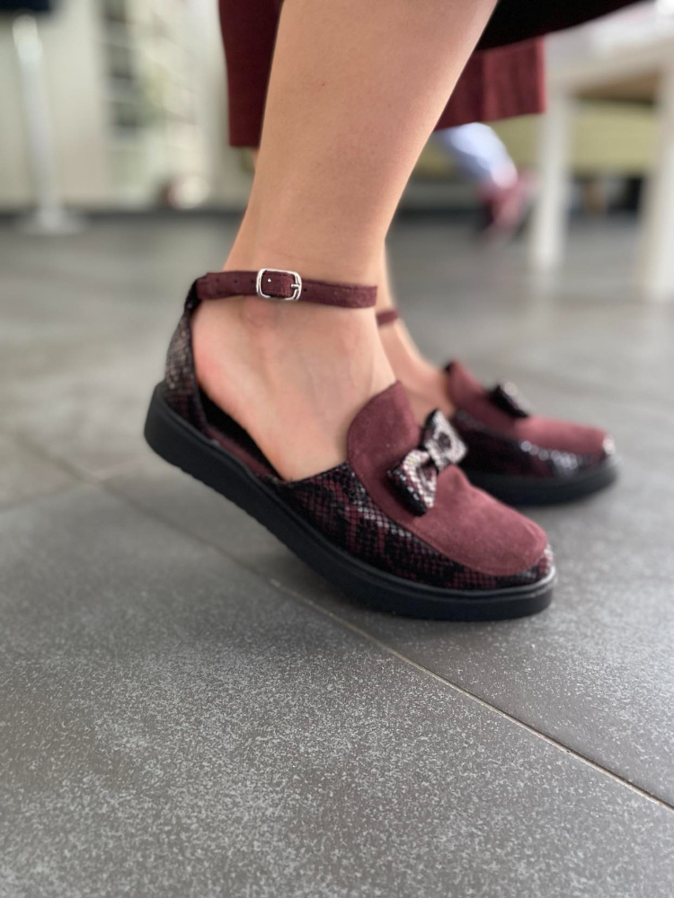 Pantofi din piele narurala cu talpa usoara, usor ortopedica (2 cm la varf si 4 cm la spate).