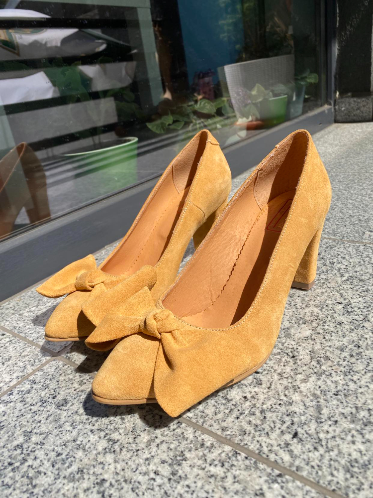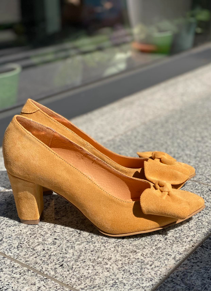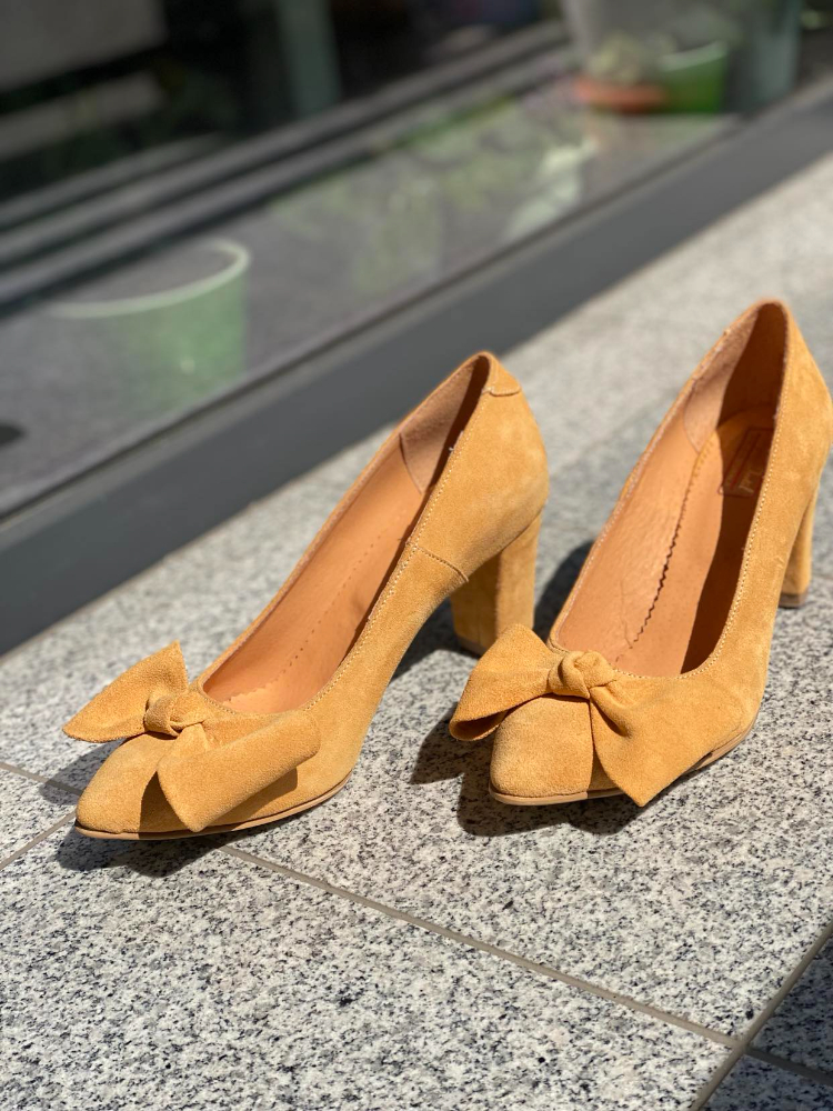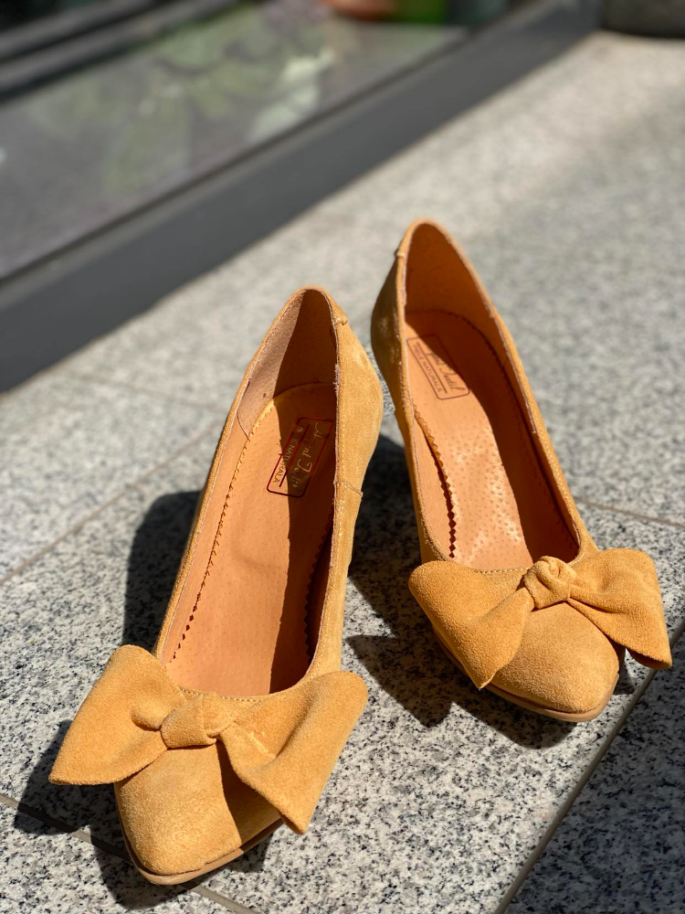 Pantofi cu toc de 7cm gros si cu talpa construita si finisata manual special pentru exterior.