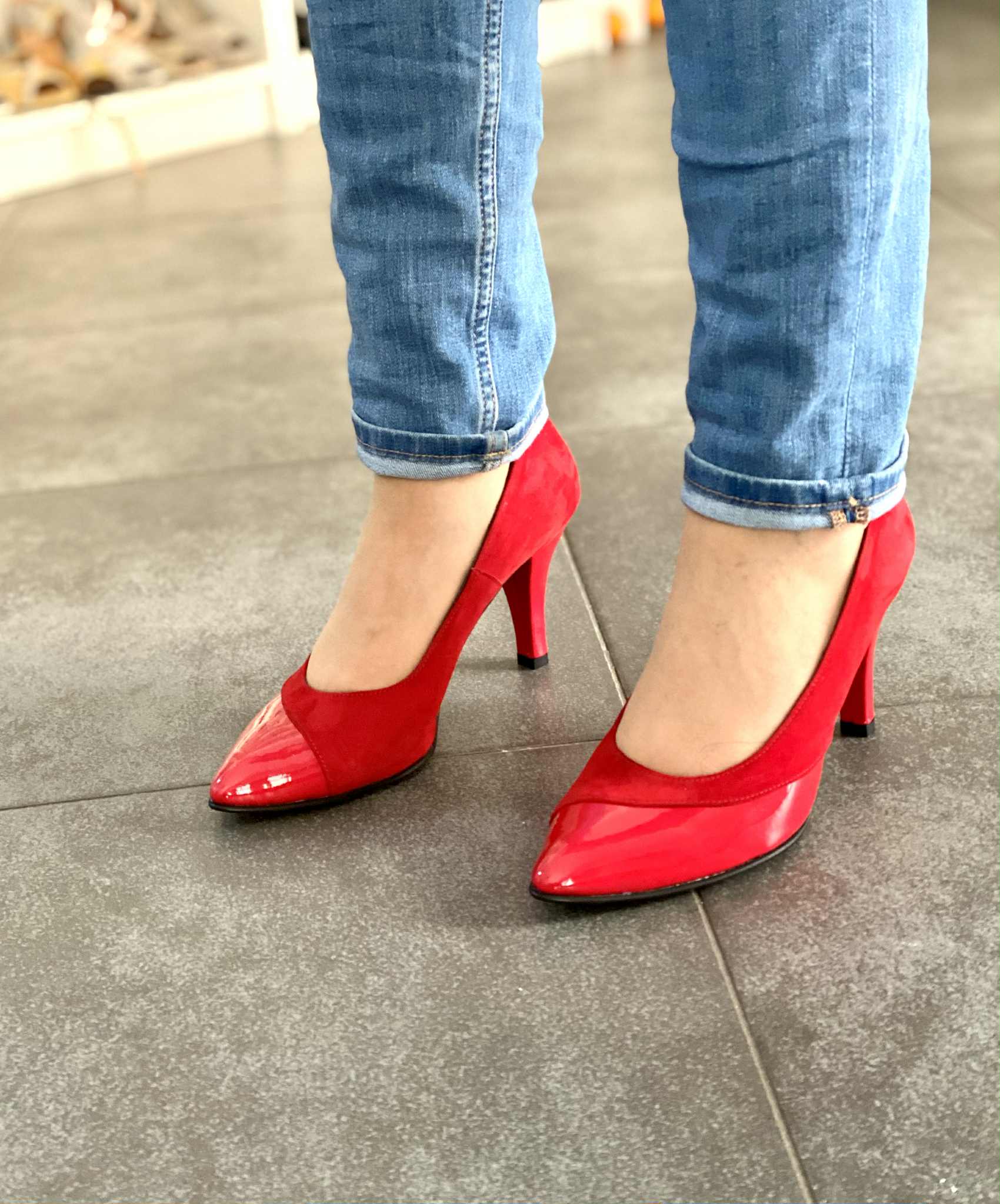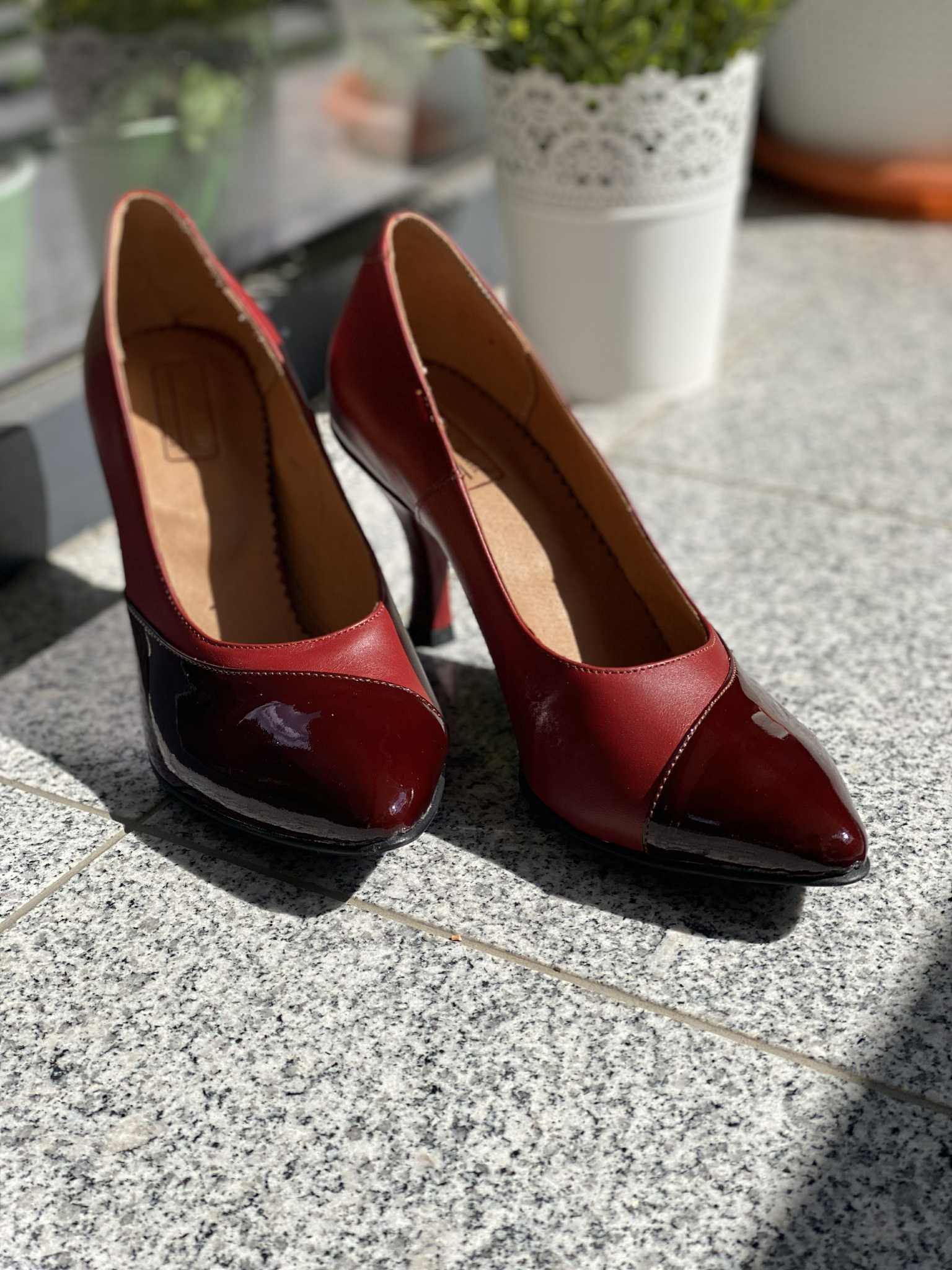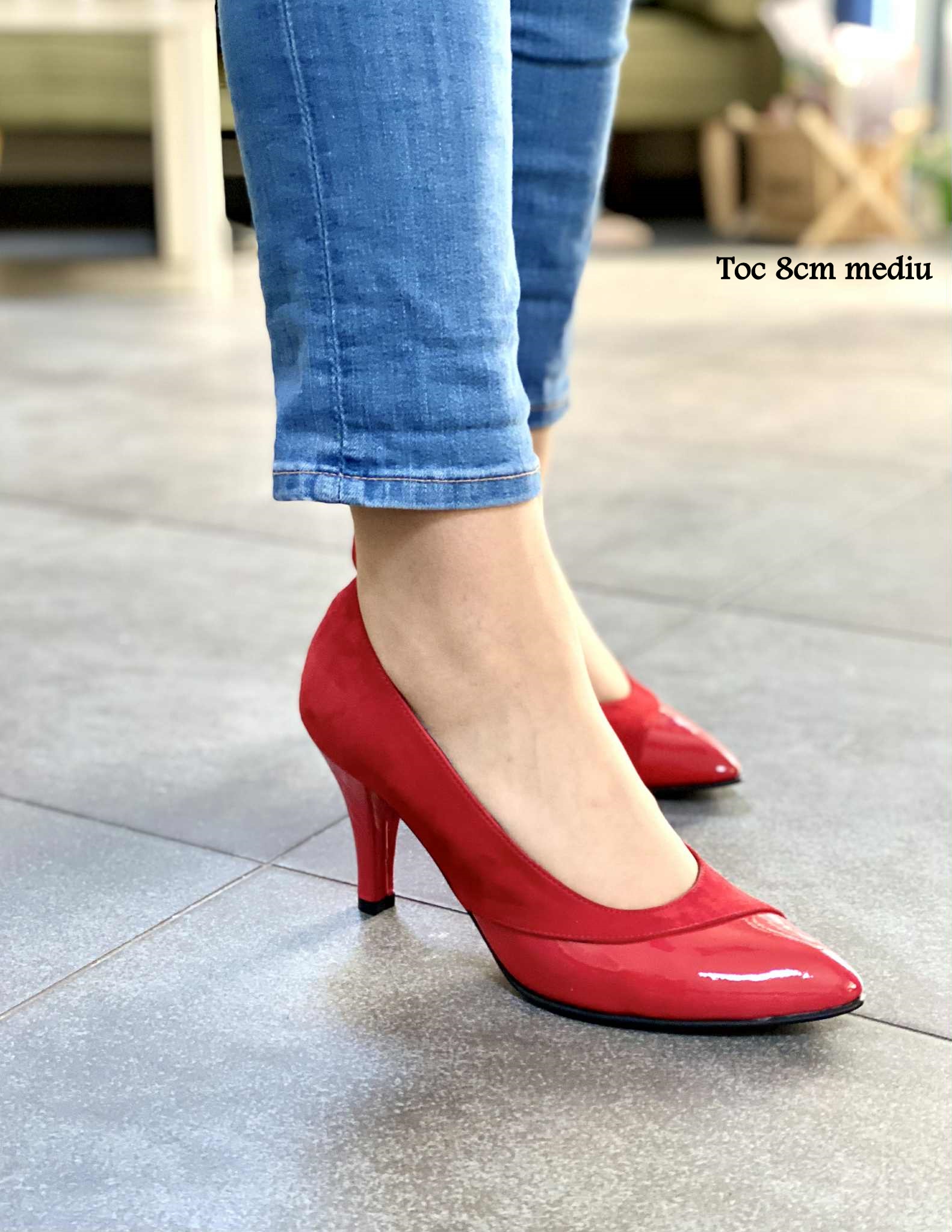 Pantofi stiletto cu varf scurt,  cu toc 8cm mediu.