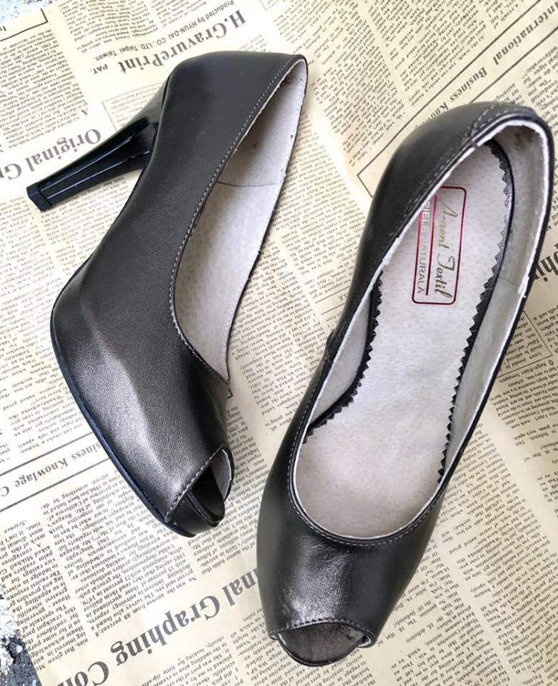 Pantofi cu platou mic si varf deschis,cu toc de 9cm mediu.