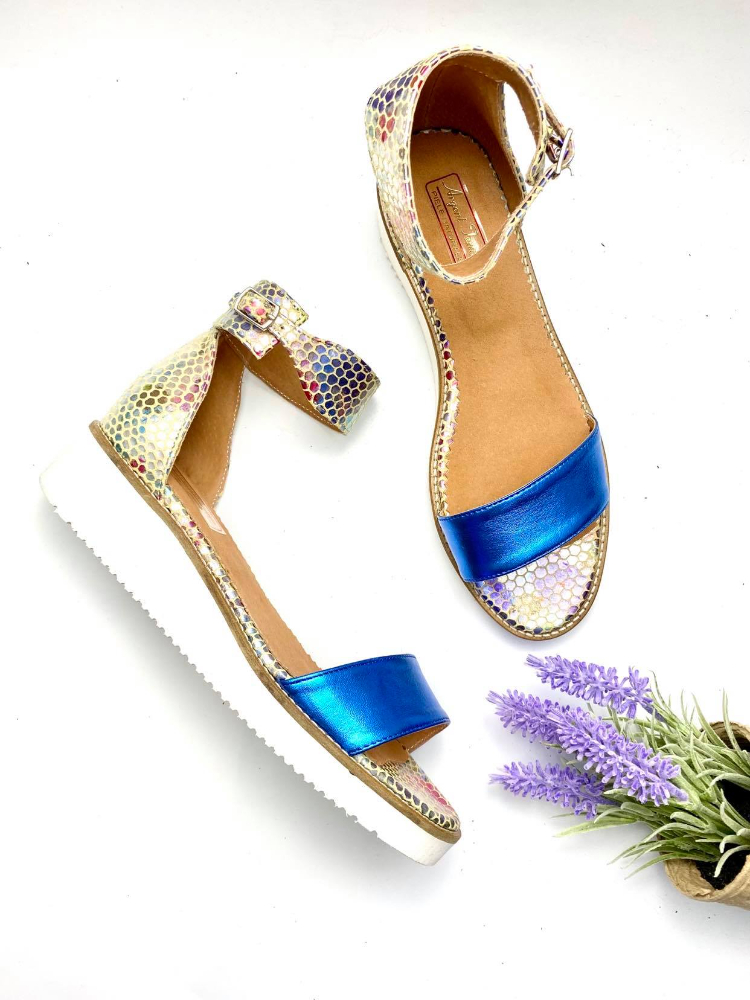 Sandalele putem sa le confectionam din orice culoare sau combinatie de culori si din orice tip de piele (box, piele intoarsa, piele lacuita).